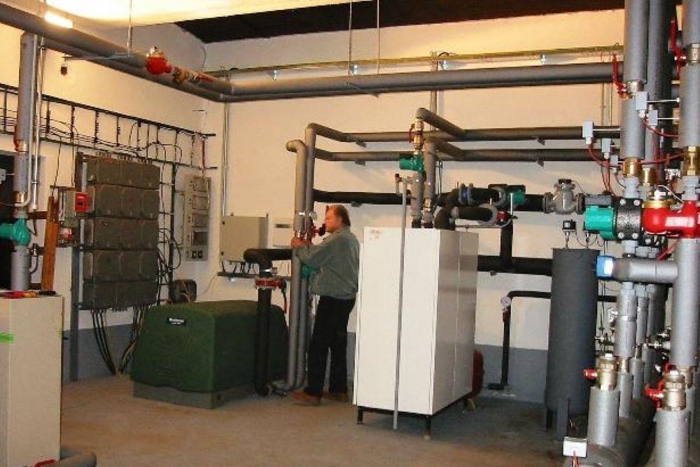 Základním zdrojem tepla je moderní dvoukompresorové tepelné čerpadlo země voda BUDERUS WPS 680 I o topném výkonu 67,8 kW, zapojené do kaskády s jedním z původních tepelných čerpadel, a dále sluneční kolektory o ploše cca 100 m2.