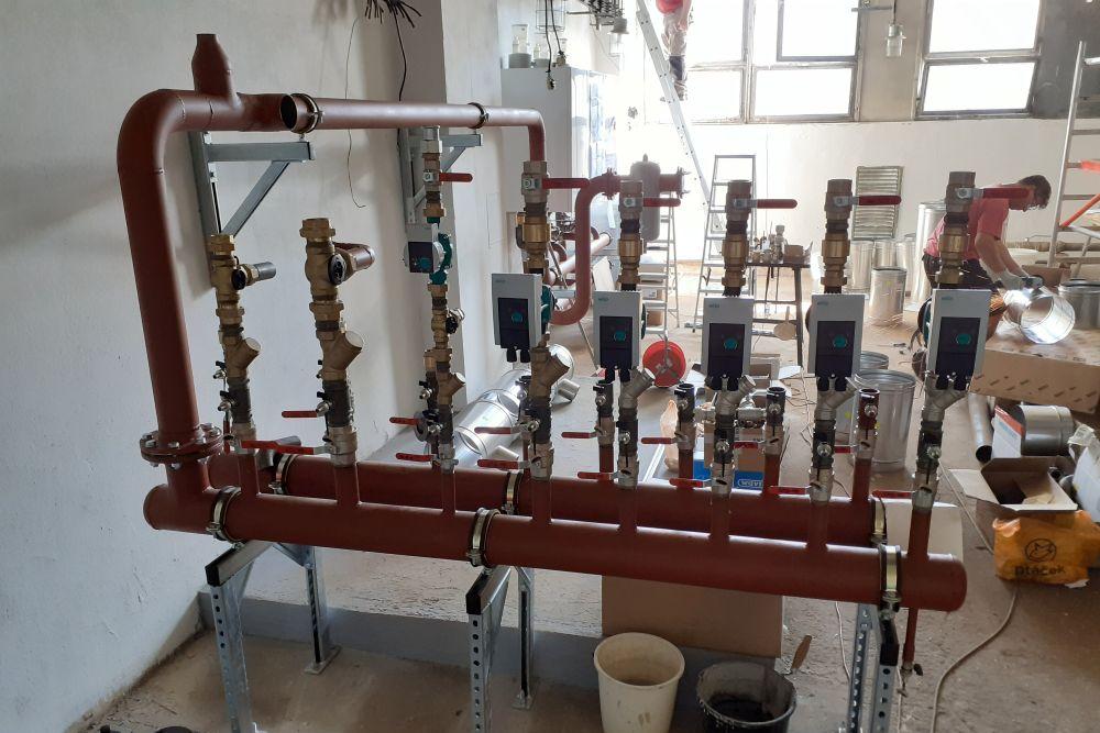 PokračovatV mezinárodním školicím středisku Stiebel Eltron jsme instalovali čtyři školicí stanice tepelných čerpadel pro výuku a jedno stacionární tepelné čerpadlo vzduch-voda. Všechna čerpadla jsou napojena na centrální rozvody topné vody s FCU a podlahovým vytápěním. Na školicí stanice se napojují cvičná tepelná čerpadla, kde účastníci školení trénují montáž a napojení systémů vytápění – od tepelného čerpadla přes expanzní nádobu a armatury až po fancoily...